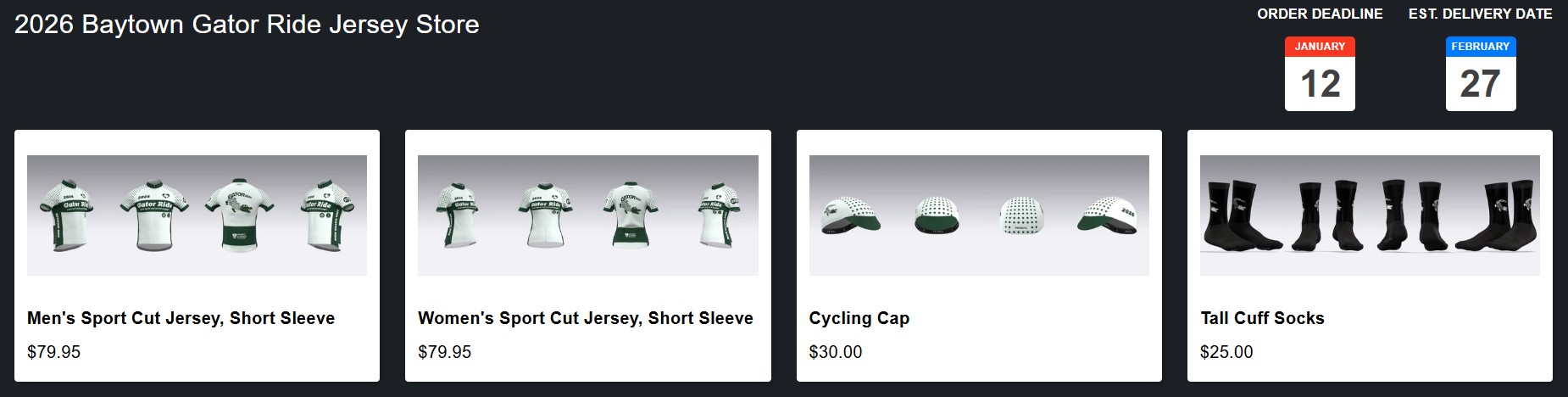 Ordering by January 12th ensures you’ll be fully outfitted with authentic 2026 Gator Ride gear when you roll up to the starting line.